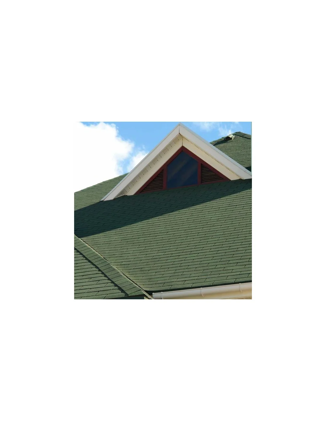 Teja asfáltica de tres lengüetas y de alta calidad. Su composición en base a asfalto de alta resistencia, fibra de vidrio y minerales finamente seleccionados, le otorgan gran firmeza y duración. Producto garantizado por 20 años.